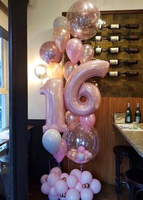 Dit prachtige show stuk wordt geleverd met 1 xl confettiballon, 1 bubblegum ballon (met kleine ballonnen), 2 xl cijfers (indien slechts 1 cijfer, passen wij dit aan met extra folie ballonnen), 10 helium ballonnen (met hi-float coating voor een langere zweefduur), 1 orbz folie ballon en natuurlijk een luxe organic basis.
